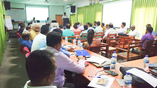 Dr. Nishan. P. Sakalasooriya, PRA Consultant for Tank Cascade System delivered his lecture on why cascade system is important for the hotspot area management at the workshop on Environment Screening Report preparation and EMP preparation held today (28th) at CBS, Rajagiriya.This two-day workshop, which started today, was organized by Ms. Udula Sedara, Environment Officer of PMU (Project Management Unit), Climate Smart Irrigated Agriculture Project (CSIAP). The PMU and DPDO (Deputy Project  Director  Office) staff participated in this workshop.